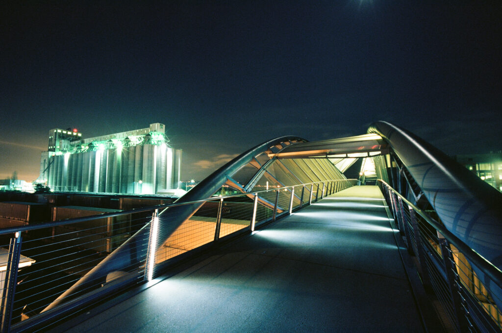 This is a great opportunity to put your newfound knowledge into practice. As night falls, the environment transforms with lights and reflections, turning ordinary structures into unique and captivating subjects.